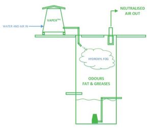 Vapex technology remediates Fats, Oils and Grease (FOG) by breaking the double carbon bonds, FOG does not reform downstream. By reducing and eliminating surface Fats, Oils and Grease odours are also decreased significantly.