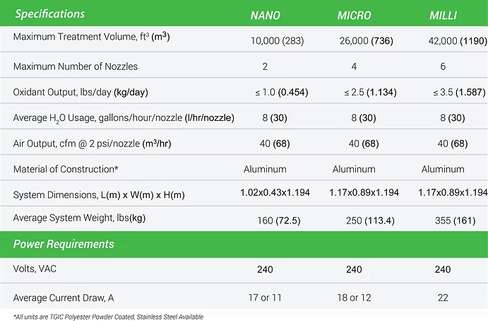The high oxidation potential of hydroxyl radicals lessens the need to generate a large amount of ozone, consequently, the units are small in size, energy efficient, and highly effective in oxidizing odorous compounds including sulfur compounds (Hydrogen sulfide, dimethyl sulfide, Methyl mercaptan, etc.), nitrogen compounds (Ammonia, Methylamine, Indole, Skatole, etc.), and aldehydes (Acetaldehyde, Butryaldehyde, etc.)