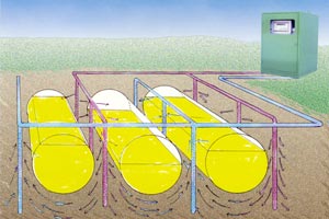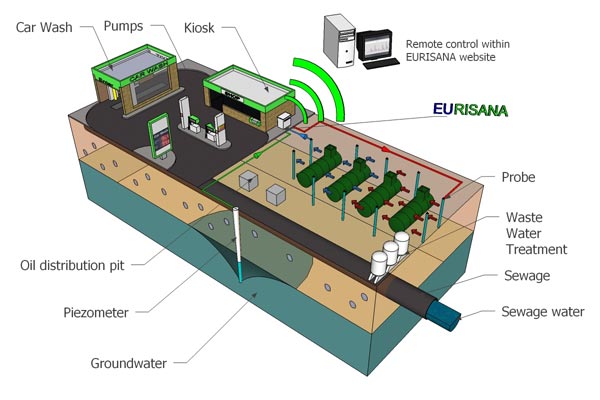 EURISANA system for remote monitoring of fuel distribution stations. UNICHIM approved (manual nr. 195-II). The Eurisana System is an advanced system for soil monitoring, particularly suitable for fuel distribution stations. It performs three main functions: continuously detect leaks from storage tanks and underground structures, heal `in situ` contaminated land from small operational spills, corrosion protection of underground tanks to extend their life. The operating principle is based on the immediate hydrocarbons vapors detection in the soil in case of leak.