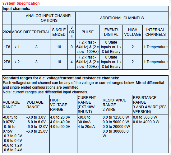 2020 multiple ADCs enables true concurrent sampling and logging. For instance one channel can sample at a rate of 100Hz whilst retaining different sample speeds on other channels, making the 2020 ideal for measuring parameters that change at different rates such as temperature and pressure.