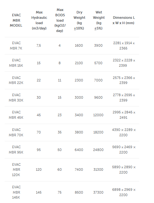 For mid-range Evac MBRs, a nutrient removal (N) module is also available if required.