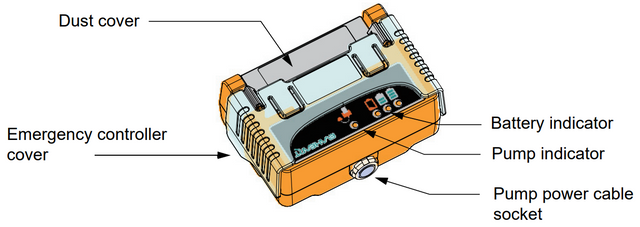 The emergency controller is a backup circuitry for the main controller. Requiring only two connections, an external battery and the blood pump cable, the blood pump automatically powers the controller at a fixed speed.