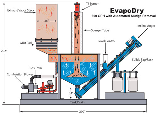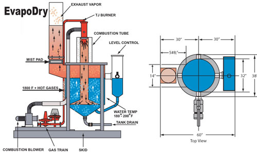 Ecologix provides low temperature evaporation systems designed to efficiently evaporate wastewater from landfill leachate recovery systems using the low BTU landfill gas as a fuel. The EvapoDry design incorporates a submerged burner tube that fires below the solution level and achieves 95%+ energy efficiency. This low temperature system evaporates solutions at approximately 180° F - 186° F, eliminating the vaporization of heavy metals and the organic breakdown of most solids. Precipitated solids are removed from the evaporator tank bottom with our unique hands off, user friendly conveyor system.