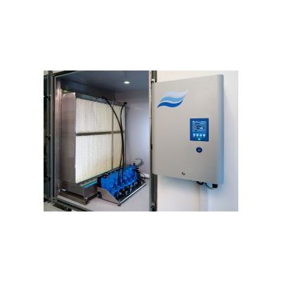 Additionally, the drain tray of the evaporative module can easily be fitted with a submerged UV water treatment unit. This helps to kill micro-organisms in the reservoir, and it is most effective when used on a supply line since water passing through it would already have been exposed to contaminants in the airstream.