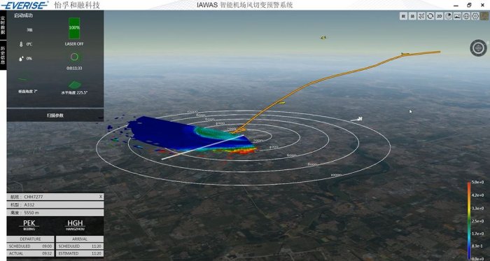 We also provides self-developed IAWAS Intelligent Airport Windshear Alerting System for airport wind shear monitoring and early warning. This platform is featured of the most advanced display technology, 3D data presentation form, and powerful data analysis and processing capacity. The platform innovatively integrates real-time flight path information, displays the wind field information on the flight path of the aircraft in 3D map, and can carry out real-time monitoring and early warning of wind shear within 10km of the airport.