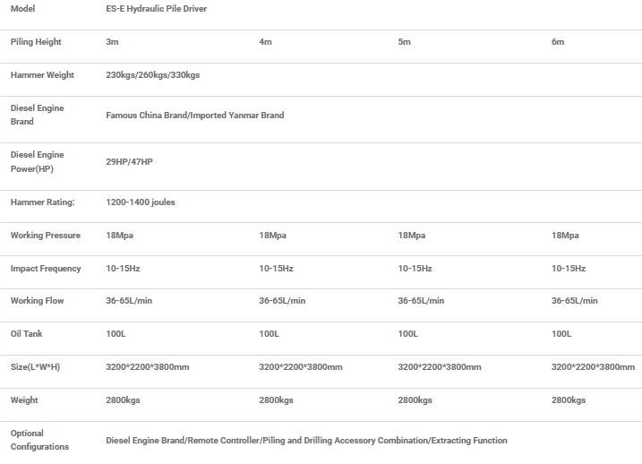 - The frame structure of the pile driver is excellent, the material strength is good, and the stability is high.