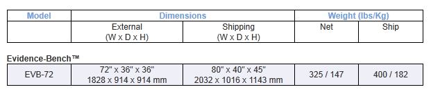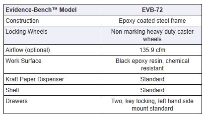 The Air Science Evidence-Bench series of laboratory work tables are designed specifically for high volume processing of forensic evidence by multiple users. Professional design and construction features offer convenience during use, cleaning, and maintenance.