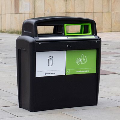 The Nexus Evolution City Duo Recycling Bin is a 160 litre, multi-waste stream, external recycling unit, consisting of a hooded aperture with two colour coded apertures to fit your exact recycling requirements. Also available as Trio and Quad configuration units, the Nexus Evolution City offers unrivalled flexibility to allow customers to match the exact requirements of any recycling scheme. A multitude of colours are available to colour code the dedicated aperture panels as well as ‘Recycle-Now’ graphics to ensure the correct use of the chosen waste stream.