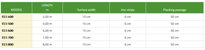 • structure in galvanized material with characteristics of strength and extreme lightness (150 kg for the 5.0 mt long model);