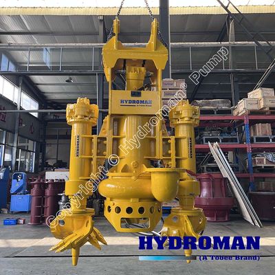 Hydroman® Excavator Attachment Hydraulic Dredging Slurry Pump designed for dredge, mud puming and sediment removing in harsh marine or mining projects. The Excavator-mounted Dredge Pumps are high efficient and heavy duty submersible slurry pump units and plug and pump system.