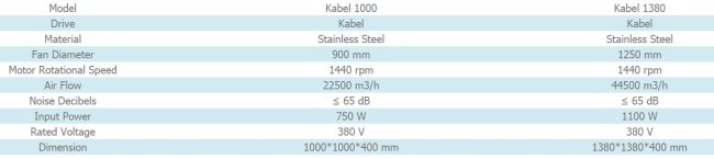 The main bodies and wings of Kabel exhaust fans are made of galvanized steel sheet. Wing structure has unique curves which increase power and efficiency. Designed to ensure energy saving. The blinds of the fans open automatic after fans start to working. They have special design protection wire at the back side.
