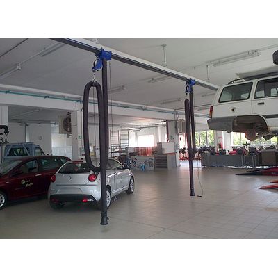 The proposed systems are used to aspirate and remove the exhaust gas from cars and trucks when they remain with the engine running in closed for repair, modification or test.