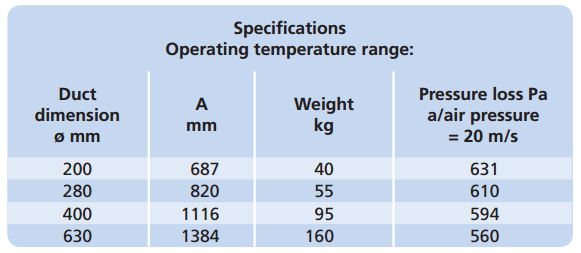 The explosion duct valve is used in order to prevent that an explosion in the plant will be channelled back to the production premises and machines. The explosion duct valve is mounted on the duct section between the plant and the source of dust. The explosion duct valve stops explosions that occur in the opposite direction of the normal flow. This means that the explosion duct valve is mounted on the inlet side on the dust separator, never on the outlet side. The dust separator covers filters, silos and industrial exhausters which are already protected with explosion relief or explosion suppression system.