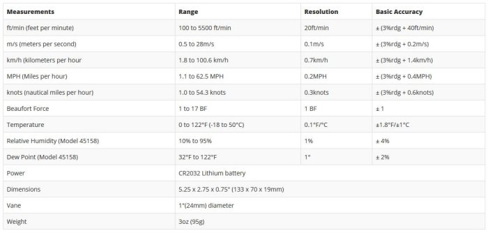 - Display Air Velocity and either Relative Humidity, Dew Point, Temperature or Windchill