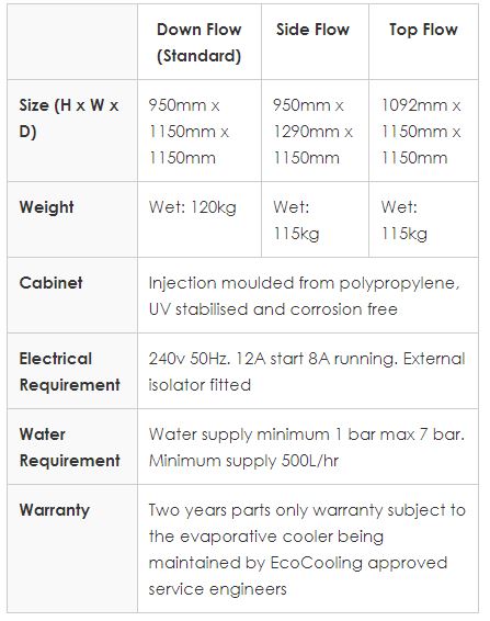 External EcoCoolers are also available in a larger size (up to 18,000m3/hr), please see the ECP EcoCooler Large product page for more details. Alternatively, if you are looking at an installation where there is no outside plant space, call our installations team for advice about plant rooms or have a look at our ECT product ranges.