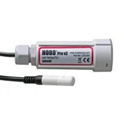 The HOBO Pro v2 External Temperature/Relative Humidity Data Logger is a weatherproof data logger with an external Temperature and Relative Humidity sensor on a 6-foot cable for fast sensor response and deployment in tight spaces. The Relative Humidity sensor features fast response and superior durability in humid environments, and is user-replaceable.