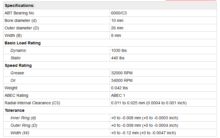 ABT - Model 6000/C3 -Extra Light Duty Metric Radial Ball Bearings