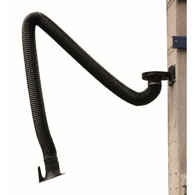 The Coral DYNAFLEX extraction arm is engineered to provide cost-effective and efficient removal of welding fumes in various industrial settings. Suitable for both cart-mounted units and central systems, the arm facilitates a cleaner workspace by capturing and removing hazardous welding fumes at the source. Constructed with a robust metal frame, the arm offers superior support and flexibility along its length, ensuring ease of maneuverability and extended operational lifespan. It features a unique double rotary bearing, allowing a full 360-degree rotation for the hood at the base connection, which can be attached to either wall support or portable extraction units. The durable, PVC-coated flexible hose ensures longevity, making it a reliable component in demanding production environments. Available in multiple configurations, including models like Dynaflex 160/3 C and Dynaflex 160/4 W, the DYNAFLEX series is a versatile addition to any industrial ventilation system.