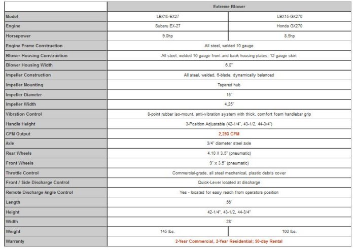 Extreme - Model LBX -High-Velocity Leaf and Debris Blower