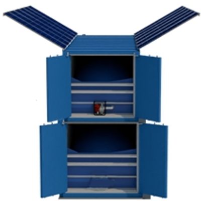 EZMass™ is a water storage based on the FlexCon™ - a 20’ container converted into a 24,000-liter (6,000-gallon) water storage. The EZMass™ is built on a stack of FlexCon(TM)s according to the required water storage volume.
