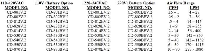 - Display of flow in CFM, LPM or M3/min. by operator selection (LED display)