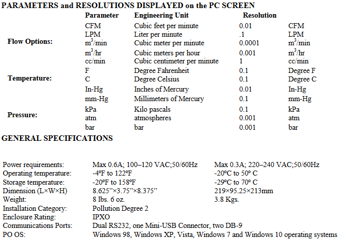 - Barometric pressure: 30 - 22 In-Hg (760 - 559 mm-Hg); (101.325-74.5 kPa)