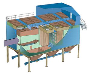 KC Cottrell Pulse-Jet Fabric Filters are used throughout industry on a wide range of applications. They provide sound technical and commercially attractive solutions on processes which demand high collection efficiencies with related low dust emissions. These filters require an absolute minimum of attention and maintenance.Installations range from a small single compartment unit up to multi-compartment systems operating as part of a complex, total gas cleaning plant often involving other types of air pollution control devices.