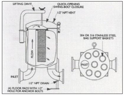 For applications with high flowrates or high dirt loads requiring more filtering surface area, choose a housing holding multiple bags. These multiple-bag filters are available in carbon steel or 304 stainless steel.