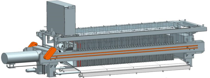KS series fast filter press, which is a high-efficiency solid-liquid separation filtration equipment, was independently developed by Techase with working together with Tongji University. This equipment which improves the plate frame structure of traditional filter press offers a plurality of integration advantages, such as low investment cost, high work efficiency, large dehydration pressure, small footprint, good separation performance, simple operation and maintenance, etc. The high pressure filter press eliminates the need for additional secondary pressurization equipment or membrane inflation medium, and has a large compression ratio, direct force, high pressure, short working cycle, and production efficiency equivalent to 3 to 4 times that of the conventional membrane filter press.