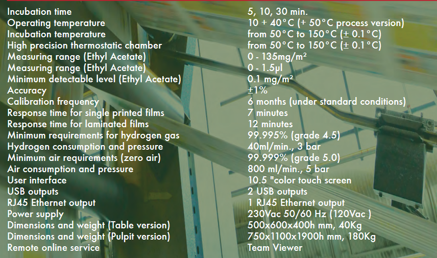 Fast Residual Solvent Analyzer for the tobacco, pharmaceutical and food flexible packaging. NEPTUNE 803 is designed for the rapid execution of the analysis performed by the machine operators, directly next to production processes, even in solvent polluted areas. By setting off the waiting time of the laboratories (sampling performed directly by the operators) and compressing, thanks to innovative instrumental solutions, the technical analysis times, Neptune 803 is able to provide a residual solvent result in the time necessary to produce a single roll (12 minutes). The use of Neptune 803 allows process corrections in real time, greatly reducing waste and rework of products.
