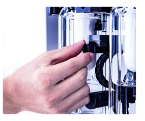 The freshly distilled solvent is collected in an easily accessible and detachable bottle. Execute an environmental friendly extraction process and save money. The innovative flange z-seal system guarantees minimal solvent emission.