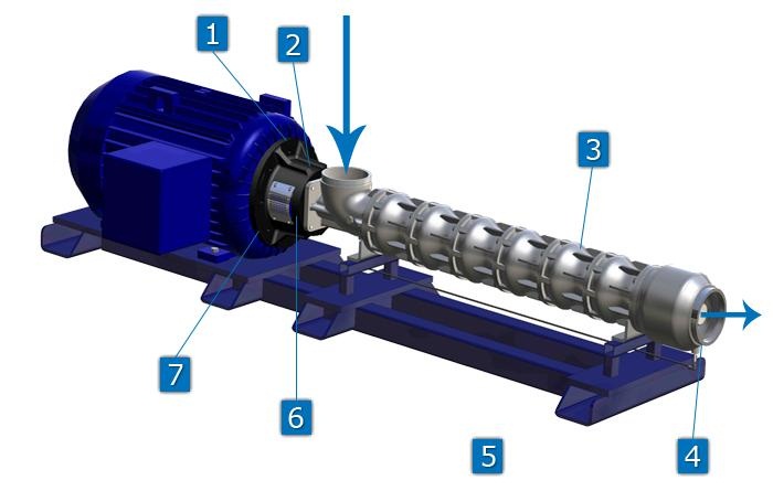 MSD High Flow models: MSD-160, MSD-200, MSD-350, MSD-400 bolted stage design with Duplex shaft and stages standard, Super Duplex material optional, baseplate optional.