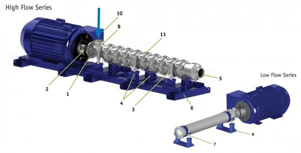MSD Low Flow models: MSD-40, MSD-70, MSD-130 with shelled design with Super Duplex Shell and shaft, Super Duplex stages standard, baseplate optional.