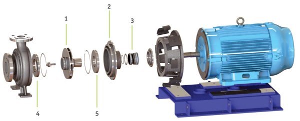1. Impeller 2. Casing Cover 3. Mechanical Seal 4. Wear Ring 5. Wear Ring