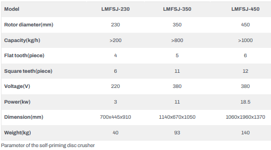 The self-priming disc mill is mainly composed of the mainframe, motor, feeding straw, grinding disc, screen, dust removal device, etc.