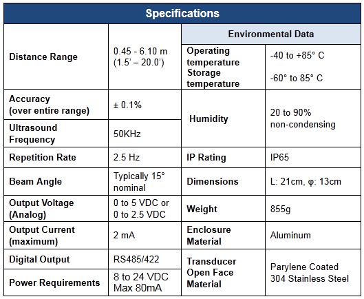 The speed of sound through the medium (air) varies with the medium’s temperature. SL300 contains a temperature sensor to compensate for changes in operating temperature that would alter the speed of sound and hence the distance calculation that determines an accurate level measurement.