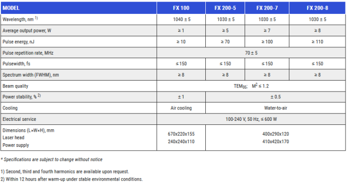 The family of the FX series lasers is completely solid-state femtosecond lasers with high average power, exceptional pulse energy and excellent stability.
