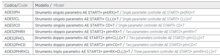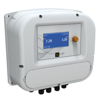 Multi parametric measuring units for control and regulation of chemical-physical water parameters such as pH, Redox (ORP), free Chlorine/Total Chlorine and Conductivity. Standard power supply IOO+240Vac. IP55 protection grade casing. 128x64 pixel backlight graphic display, simple user interface by means an encoder. Basic or Expert programming mode. Setpoints with independent adjustment in ON-OFF or Proportional mode. Acid/Alkaline (pH), Oxydant/Reductive (RX), Direct/ inverse (Chlorine/Conductivity) functioning mode. Level probe, proximity sensor and temperature probes (PT100) inputs. RS485 output. 4-20mA proportional outputs with adjustable range by user. Priming mode. Assisted calibration of the probes. Quality verification of pH and Redox probes.