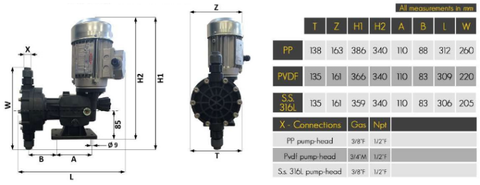 Ideal for: Water treatment (coagulants, flocculants, hypochlorite). Irrigation systems. Paper Industry.