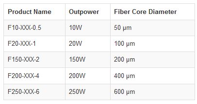 Model Number Breakdown (FY-XXX-Z) F:Model Type: F = Fiber coupled laser diode module Y:Output Power (W): Up to 10kW XXX:Wavelength (nm) *Standard: 808, 915, 940, or 980 nm *Non-standard available. Please inquire. Z:Fiber Core Diameter (in hundreds of microns): 0.05-1.0mm