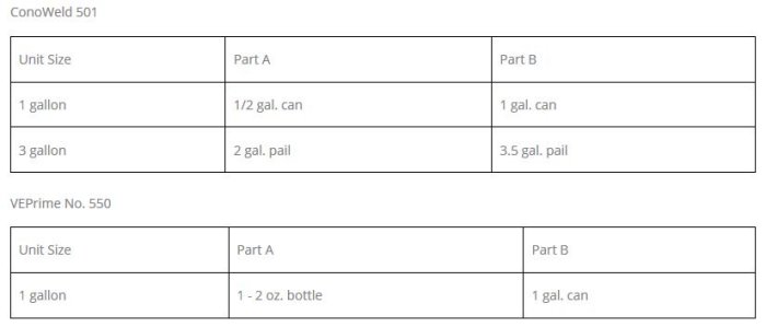 - ConoWeld 501 200 ft2 per gallon at 8 mils.