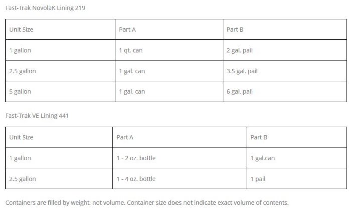 A single coat of 60 mils of the Fast-Trak NovolaK Lining 219 is suitable for most applications. Two 40-mil coats of the Fast-Trak VE Lining 441 are generally recommended when using the vinyl ester grade. This will result in a dry film thickness of 63 mils for 441. Allow a minimum of 4 hours between coats at 70°F.