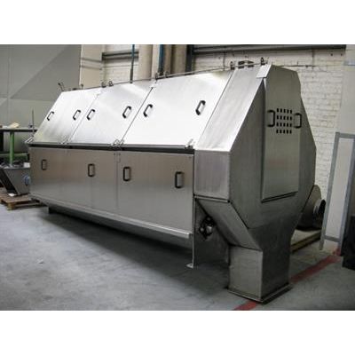 The fiber sieve drum is designed to eliminate fibers and solid particles from waste- and process water through sieving. The contaminated water is injected into a drum that contains small holes at the sides through which the water is sieved off. The particles that are unable to go through the holes are discharged from the drum by means of an internal screw. The fiber sieve drum can be equipped with an automated cleaning system that works by means of a brush and high pressure spraying nozzles.