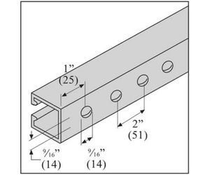 Punched holes are 9/16” holes on 2” centers. Replaces drilled strut. For use in tray support systems, electrical conduit and tray rungs for tying down cable. Available in 10 ft and 20 ft lengths. Please download our Strut Catalog to see more information including loading data.