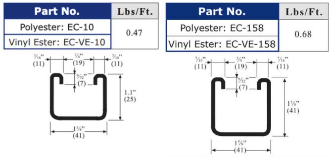 Enduro’s fiberglass channel framing works with industry standard materials as well as most commonly used industrial structures such as beams and columns. Our channel framing can be ordered solid or punched. For punched channel framing, add “H” to the end of the part number; example: EC-10H. Punched not available for double channel.