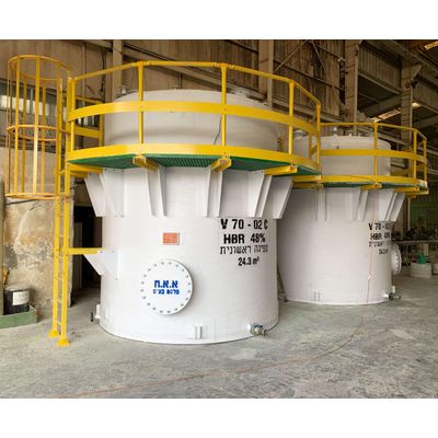 The design department includes seasoned engineers who provide solutions tailored to the clients’ needs. Fiberglass storage tank with very high chemical resistance.