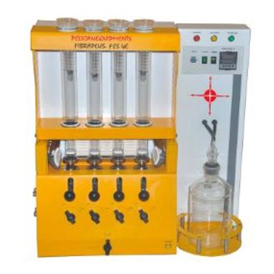 Automatic Four Place PC Compatible Auto sequencing Fibre Estimation System with Economic Version. Application: System for determination of Crude fibre, Neutral Detergent Fibre, Acid Detergent Fibre, ADL, Cellulose, emicelluloses, Lignin & related parameters in plant materials compound feed, food etc. Fibre Determination in accordance with Weende, Van Soest and other recognized methods (Safe and Environmental friendly). Ceramic Infrared Heater. Digital display. Integrated auto sequencing time/temperature domain of 2 programs and 8 sequencing steps. RS 232 interface for PC/ Laptop Connectivity, Temperature Controller is isolated separately in a control tower to protect electronics from heat zone and acid reaction zone, with separate access door for main unit & electronics control tower unit. Fibrastat hot plate casted aluminium alloy heater with thermostatic control. Sintered Silica Glass Crucible with P1 Porosity disc (4 Nos.). Reagent Preheating time: 15 - 20 min.