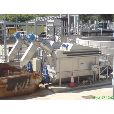 The solids retained on the screen basket surface lead to gradual blinding of the basket surface which has an impact on the level difference in the channel. The screen basket cleaning cycle starts at a defined water level in the channel upstream of the screen. The blinded screen basket surface is cleaned as the screen basket rotates lifting the retained solids to the spray water cleaning system where they are washed into the trough in the centre of the screen basket. The screenings are removed from the trough by a screw conveyor and dewatered and compacted as they are transported upwards through a rising pipe.