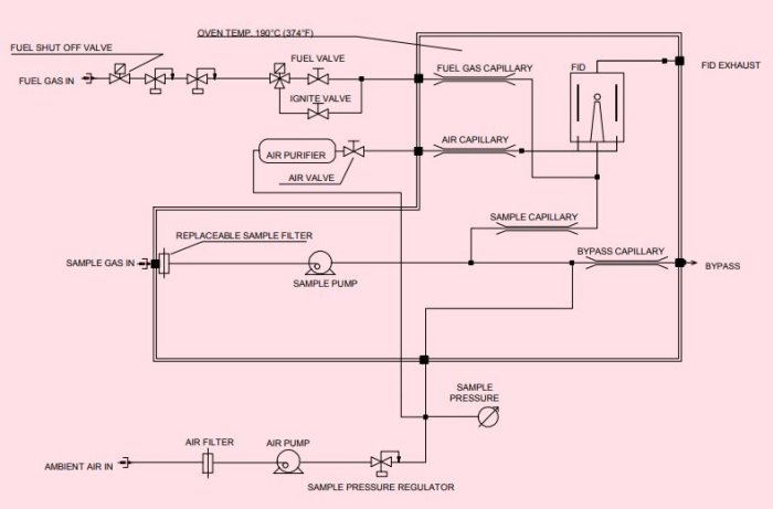 - Sample pump: approx 25 l/min capacity @ operating temp