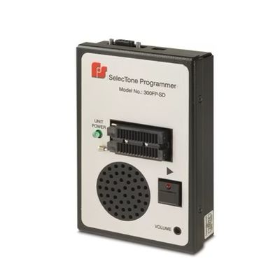 Model 300FP Field Programmer is designed to transfer and program custom messages and tones on CommCenter message modules. The unit features an integrated playback speaker for review before the module is installed into any of the compatible devices, including 300MB or TM33-SD. Lossless audio transfer is achieved through the use of proprietary file loading software supplied with the unit and/or downloadable from our website. Through user-friendly instructions, an end-user will simply program/transfer an audio file to the module. This is done by connecting a communications cable supplied with the unit between the PC and the 300FP Field Programmer. The end user then follows the on-screen instructions, selects a communications port on their PC and an audio file to be transferred. Once activated the software automatically programs the microprocessor. It’s that easy. The transfer software is compatible with Windows XP, Vista and Windows 7.